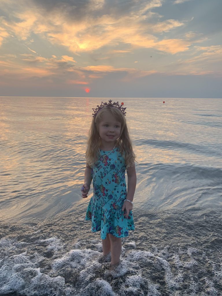 Tonight was a Mermaid’s Dream come true for Sophia. We headed to Point Breeze Beach in Angola, New York. Sophia and Olivia were excited to jump in the water. They always think they are at the ocean whenever water is near. Sophia had worn her mermaid crown and jewelry for the occasion. She couldn’t wait to get her flip flops off and head into the water. As a past Buffalonian, I can’t believe this is my first time putting my toes into Lake Erie! This experience reminded me of my childhood when I used to go to Sherkston beach in Canada. It was absolutely beautiful here and Sophia and Olivia loved it. Olivia danced in the water as the small waves hit her feet. We didn’t stay long because the sun was setting and we wanted to get something to eat at the Castaways Restaurant.